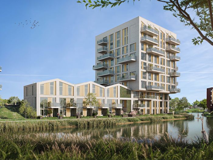 De projectlocatie vormt letterlijk en figuurlijk de Kroon op Indië. Gelegen op de punt van blok 14B, waar twee kanalen samenkomen, functioneert deze plek als architectonisch ankerpunt binnen de wijk en de stad. Het ontwerp put uit de industriële structuur van het Indië-terrein, gekenmerkt door een strak orthogonaal grid. Dit lijnenspel vormt de basis voor de opzet van blok 14B: een gelaagde compositie van woningen, appartementen, commerciële ruimten en horeca, die zorgvuldig verweven is met de bestaande bebouwing.