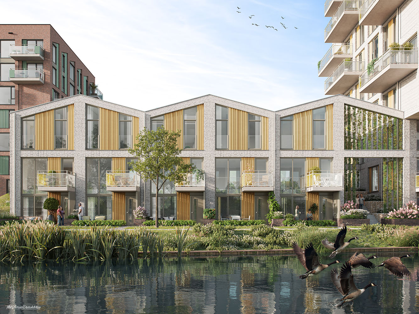 Duurzaamheid staat centraal binnen het ontwerp. De woningen beschikken over moderne energiezuinige installaties en hoogwaardige isolatie. De openbare ruimte transformeert tot een aangename verblijfsomgeving met groene zones, ruime balkons en terrassen. De kade en het kanaal zijn niet alleen visueel betrokken bij het project, maar functioneren als levendige ontmoetingsplekken die een natuurlijke verbinding met de wijk versterken.