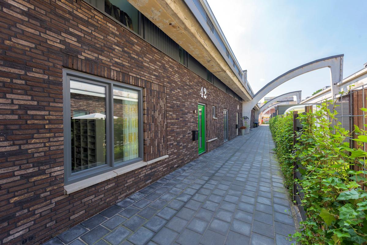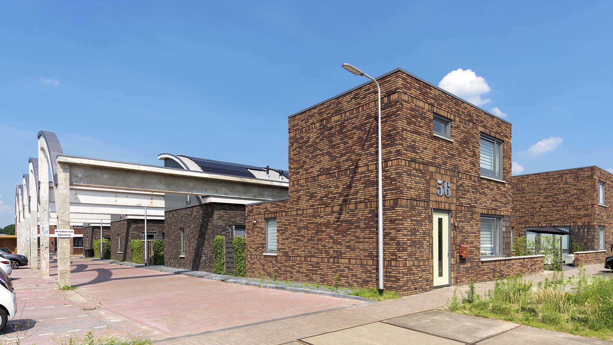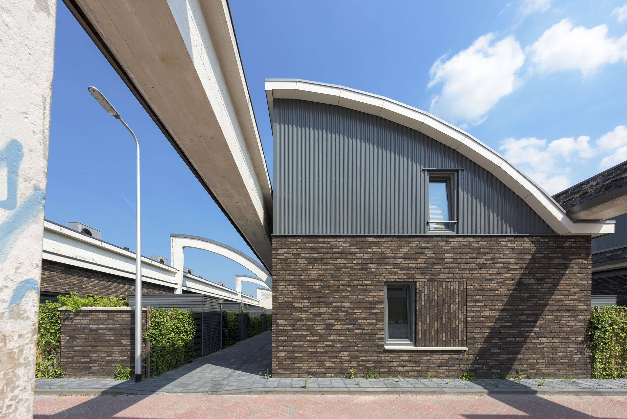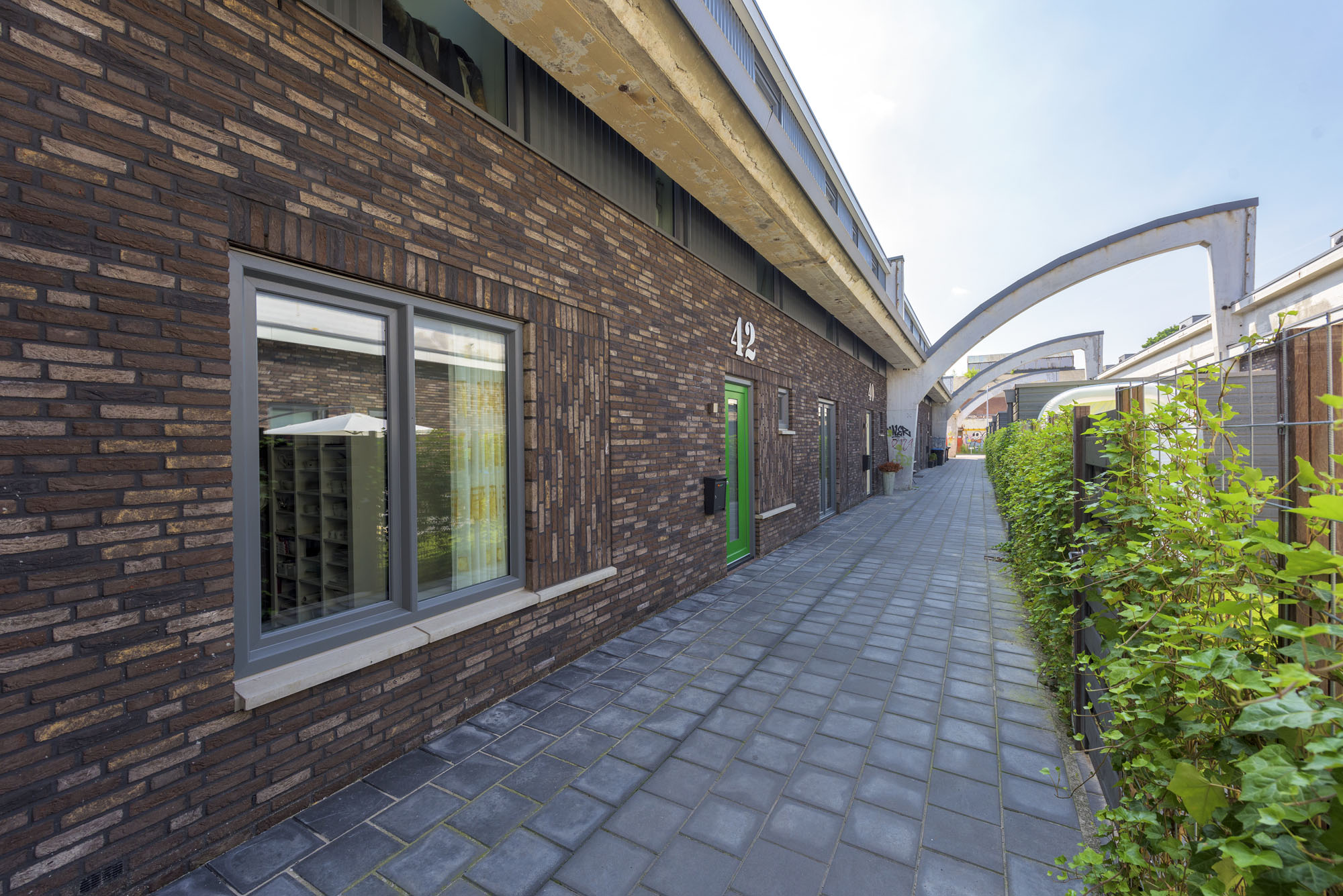 Onder de bestaande betonnen draagstructuur en tussen de spanten zijn woningen ontworpen, met een verwijzing naar het historische industrieel erfgoed. In de vorm van robuust metselwerk, met subtiele metselwerken details en kleurstelling.