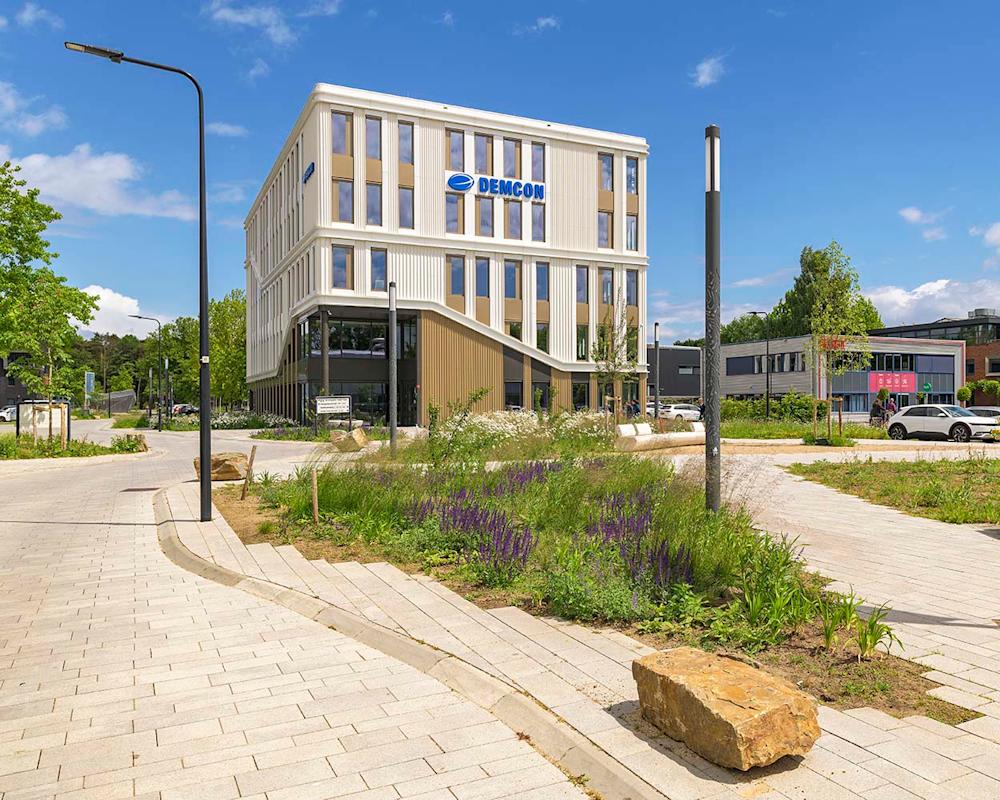 Groei en ontwikkeling staat centraal met de Twentse nuchterheid in het achterhoofd. De eenvoud van het HQ past hierbij en straalt kracht uit. Wanneer je een stap dichterbij zet, word je verrast door de verfijning en aandacht voor detail. Het spel van de bewegingen in de gevel, de plint in relatie tot het ontmoetingsplein en de verticale raamstroken maken het HQ het meest bijzonder. Het laat de vernieuwing, de groei en de speelsheid zien van Demcon. Van geen enkele kant is het gebouw hetzelfde, er gebeurt telkens wat anders en trekt je ogen ernaartoe.