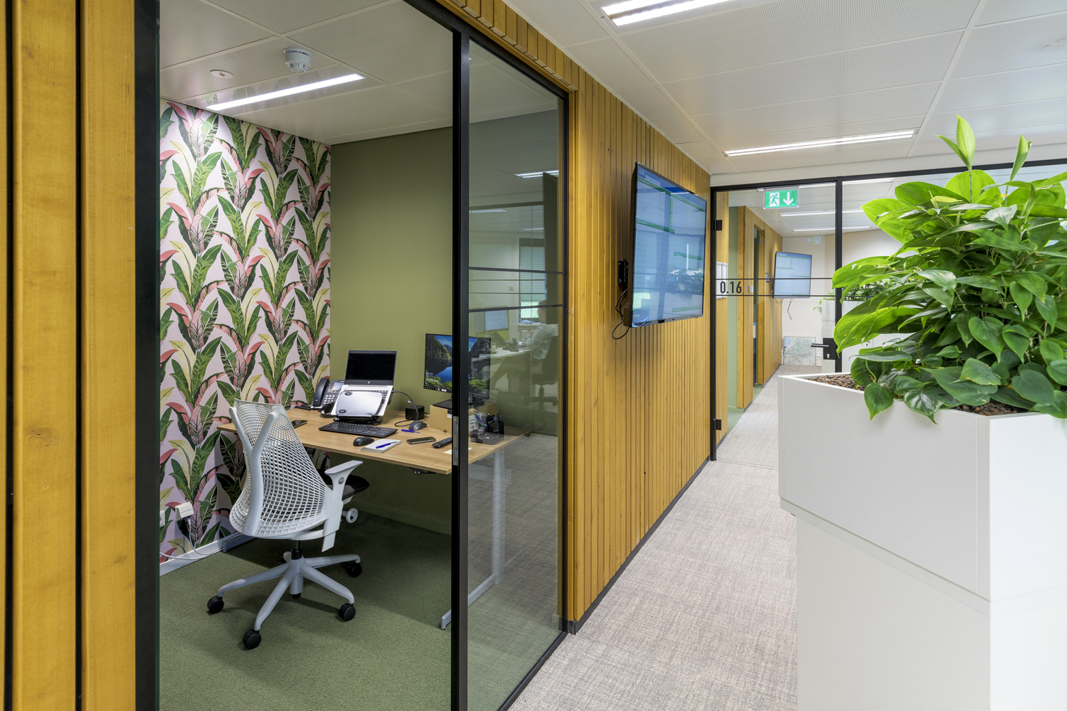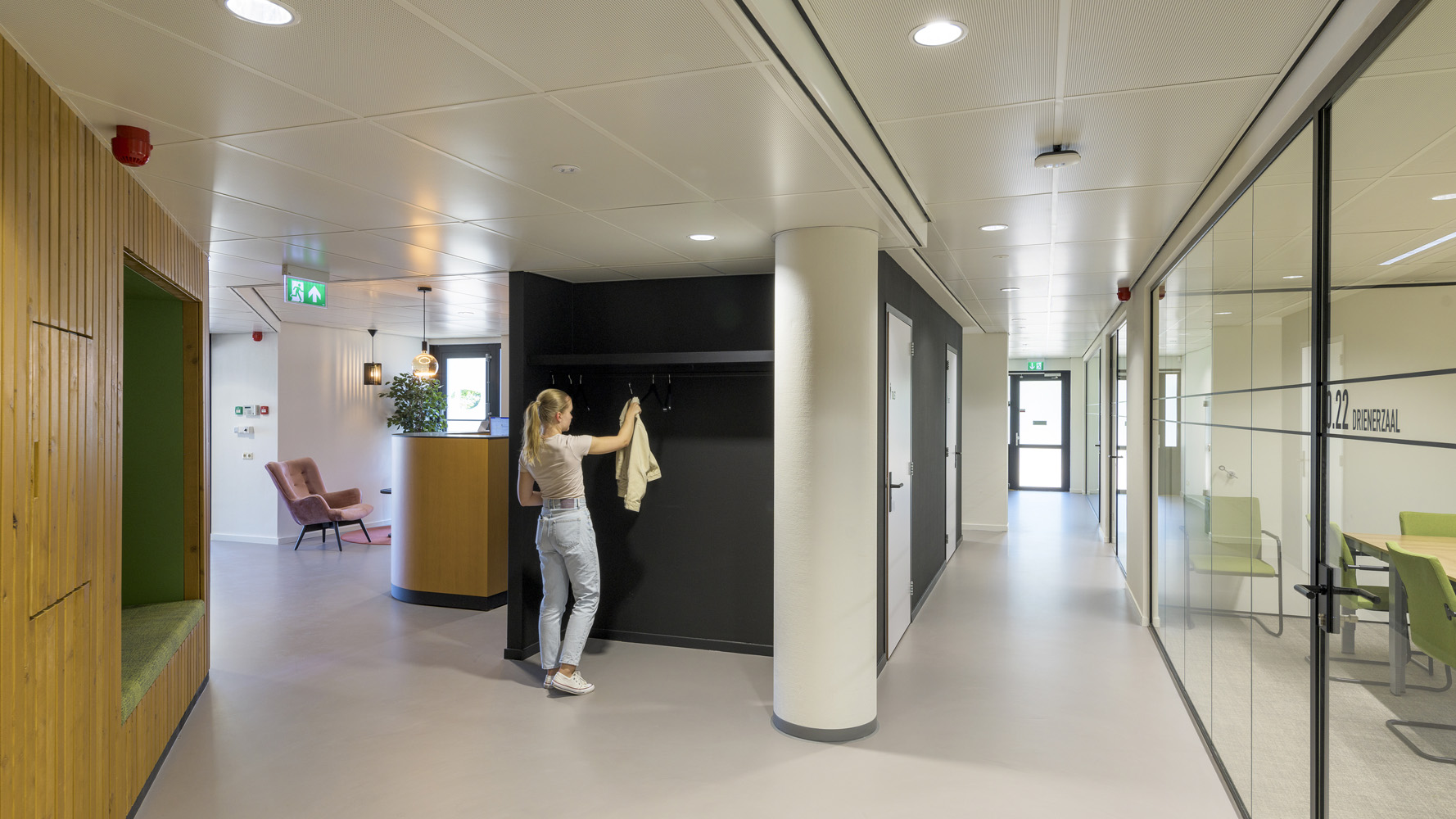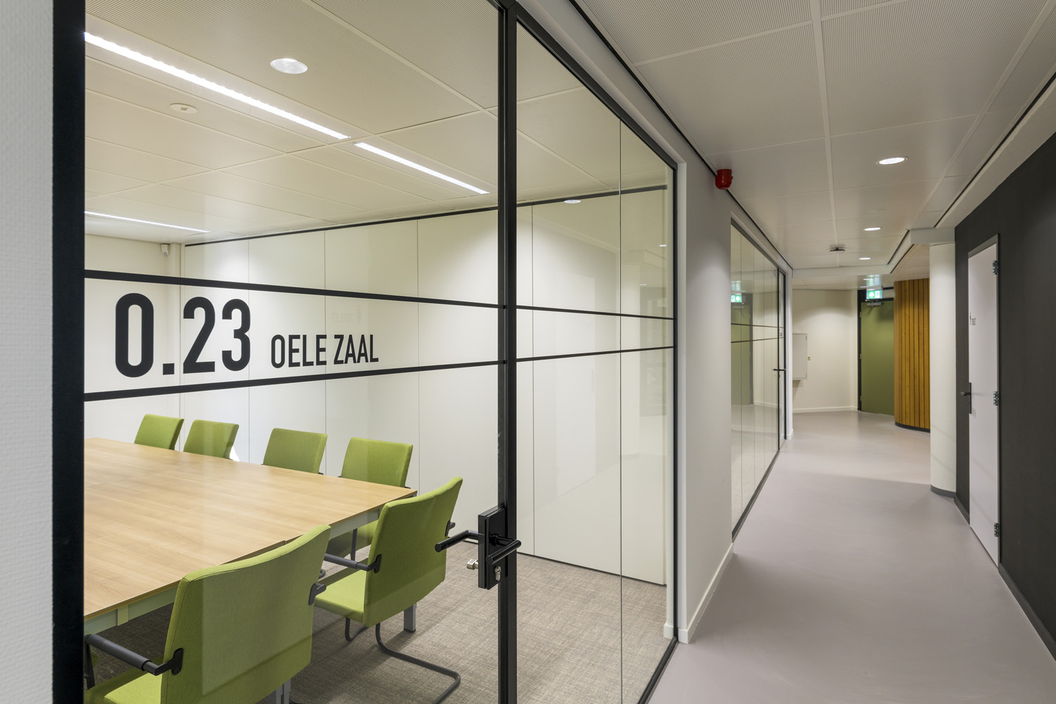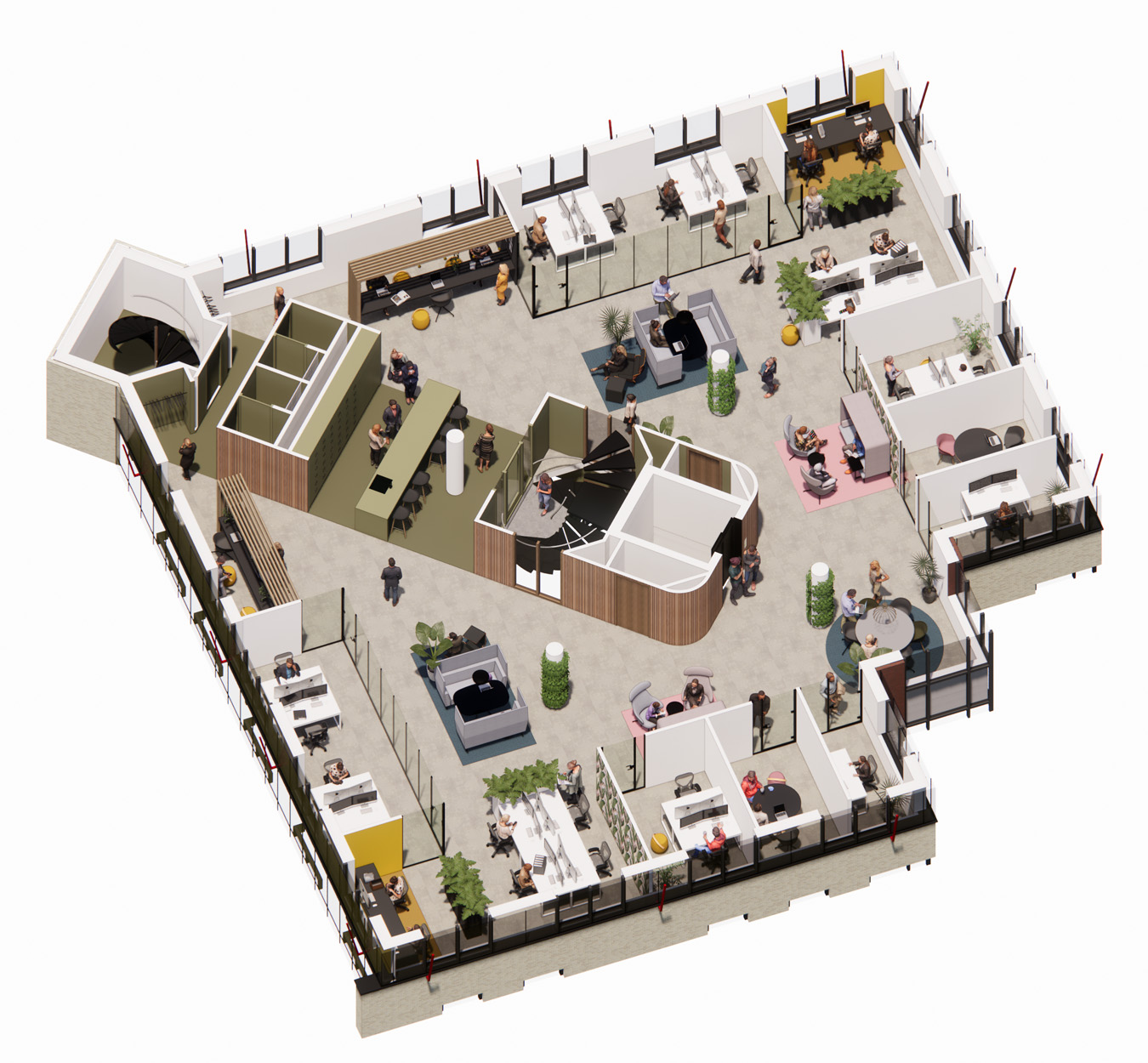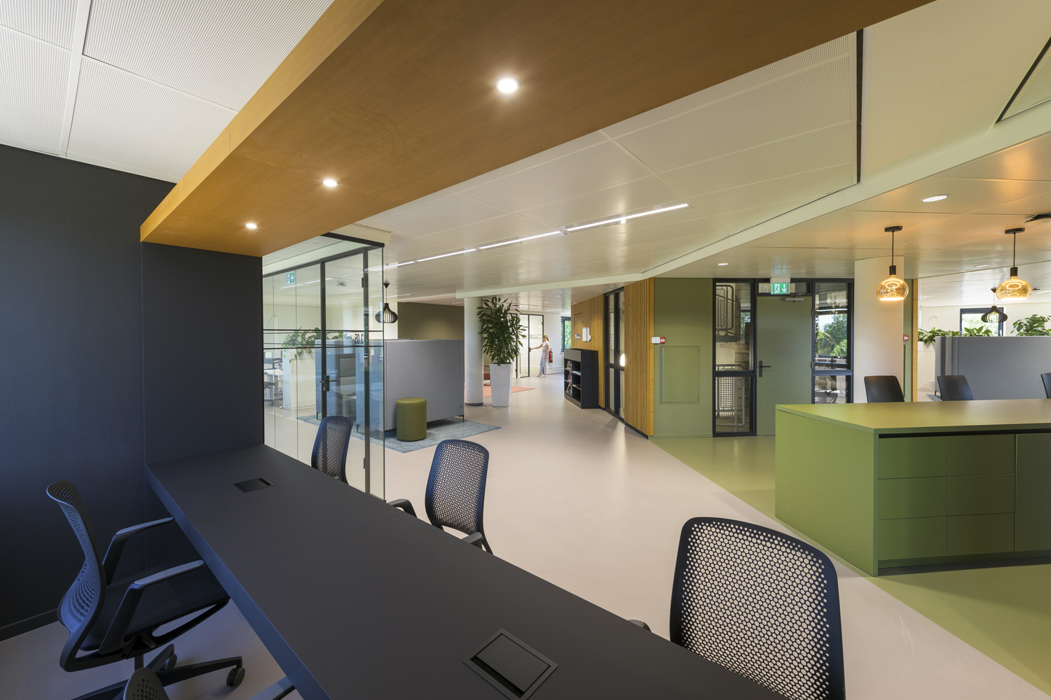 Met als uitgangspunt flexibele werkplekken voor iedereen hebben wij een open dynamische werkomgeving gemaakt. We gebruiken veel glas, waardoor je makkelijk contact hebt met elkaar, terwijl je toch rustig werkt. Op alle verdiepingen zijn veel verschillende hoekjes en functies, net als thuis. De zitkamer en eetkamer zitten ook in één ruimte, maar zitten elkaar niet in de weg zitten. Het voelt knus en vertrouwd.