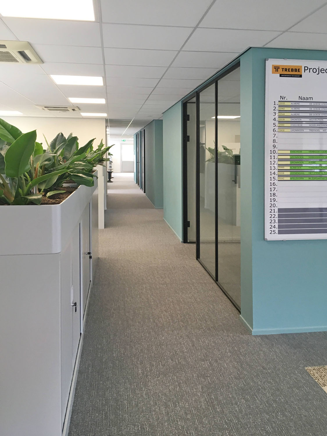 Het bestaande kantoor van Trebbe Oost & Noord in Zwolle was traditioneel ingedeeld; met kleine kantoren en dichte deuren. Dit sloot niet meer aan bij de nieuwe manier van werken.