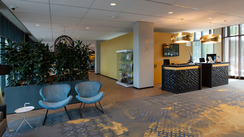 In ieder ander hotel loop je al snel volgens een denkbeeldige lijn richting de receptie. Het U-Parkhotel heeft geen receptie, juist kleine baliemeubels waar je open ontvangen wordt. Het is een grote open ruimte voor zowel hotelgasten, studenten en (conferentie)bezoekers. Je vindt er veel zitjes waar je even rustig een kopje koffie kunt drinken of je ontbijt kunt eten.