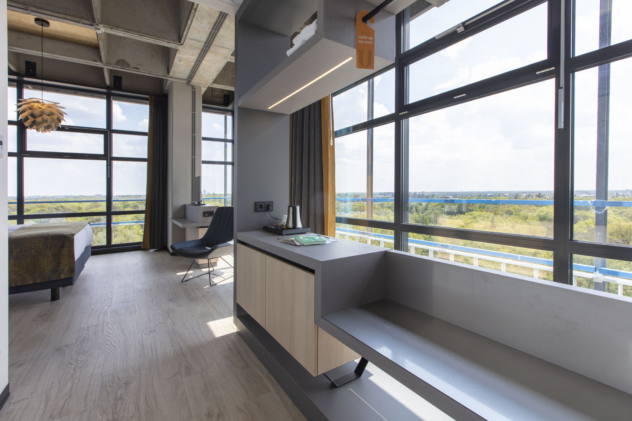 Wanneer je een hotel binnenkomt, is het vaak steriel en formeel. Als gast hoor je je juist vrij te voelen om binnen te komen en overal te gaan waar je wilt. Dat je je niet voelt als een indringer, een vreemde. Het U-Parkhotel is bedoeld om je thuis te laten voelen in een andere omgeving. Eigenwijs en toch vernieuwend door de combinatie van robuustheid en chicheid.