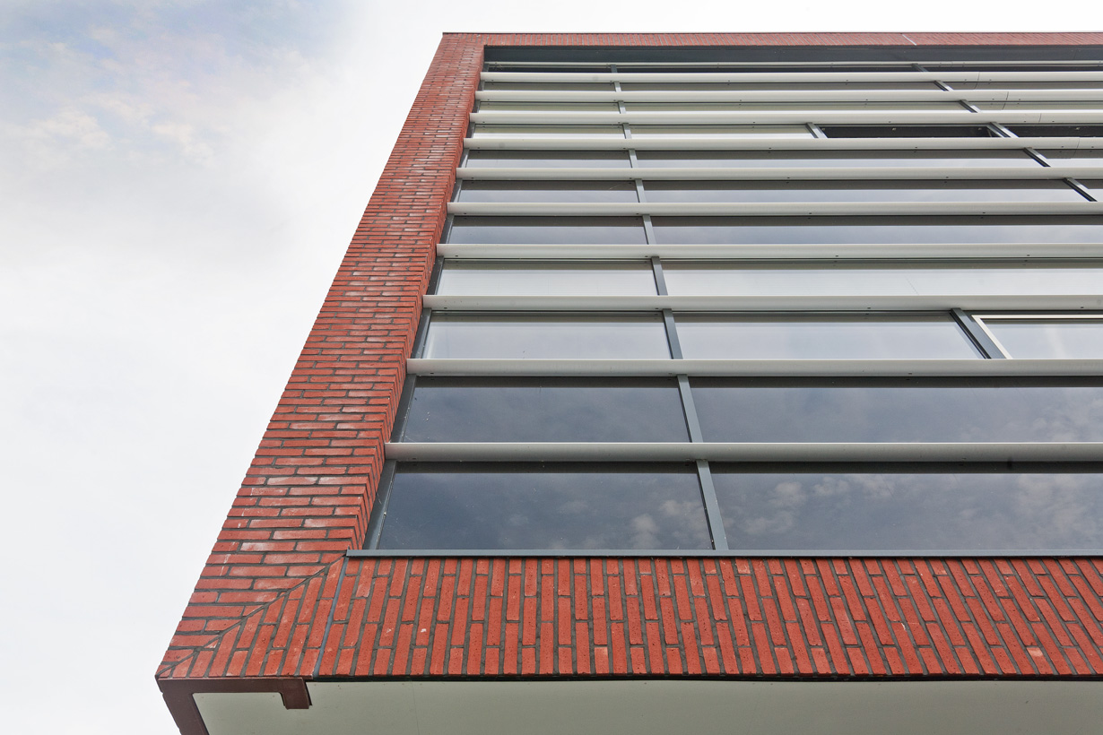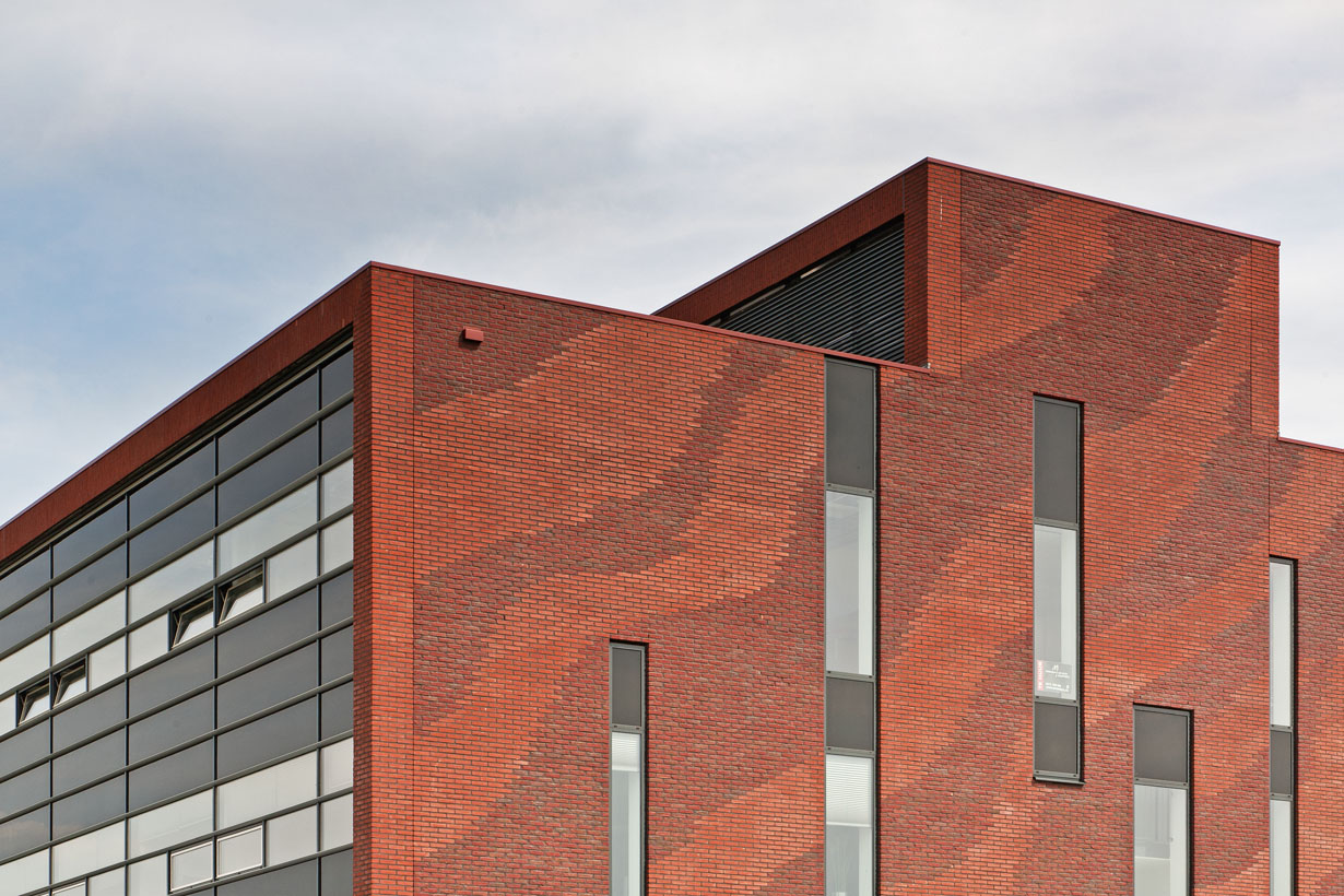 Het gebouw is uitgevoerd in warm rood-bruin metselwerk. In de voorgevels is dit metselwerk zichtbaar als een bakstenen omlijsting. Voor het overige zijn deze voorgevels voornamelijk glas(-achtig) in de vorm van een vliesgevel van aluminium, glas en colorbel. De zijgevels daarentegen zijn overwegend gesloten met smalle, random gepositioneerde, verticale raamopeningen. Samen met het golfpatroon in het metselwerk vormen ze een – letterlijke – reflectie van de Berkel op het gebouw.