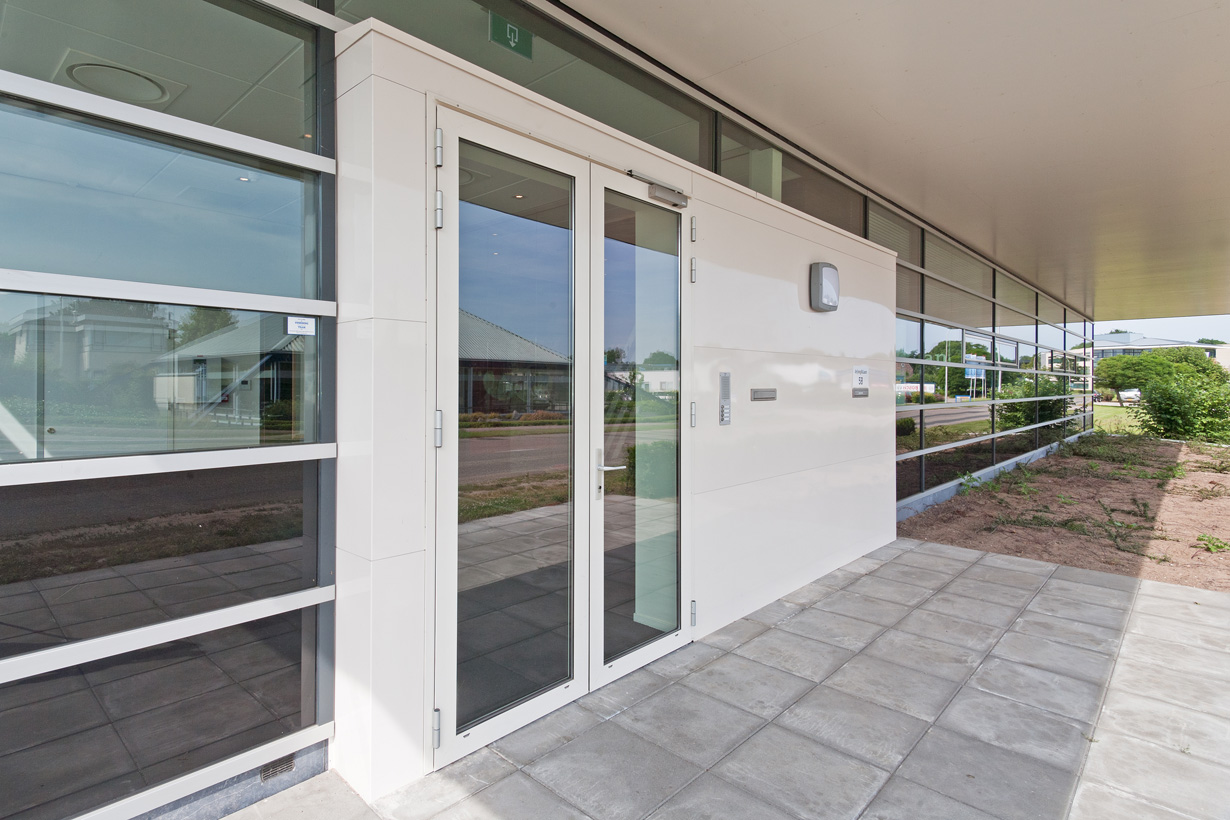 Het kantoor heeft een heldere vorm met behalve een voorgevel gericht op de Larenseweg tevens een ‘voorgevel’ gericht op de Berkel. De begane grond ligt ten opzichte van deze twee ‘voorgevels’ terug, dit markeert de entree op een natuurlijke wijze. Bovendien zorgt dit ervoor dat het gebouw zich losweekt van het maaiveld en het bestaande landschap zich er schijnbaar onverstoord onder voortzet. Een extra kwaliteitsslag is gemaakt door de installaties op het dak integraal vorm te geven als een – plaatselijke – extra verdieping.