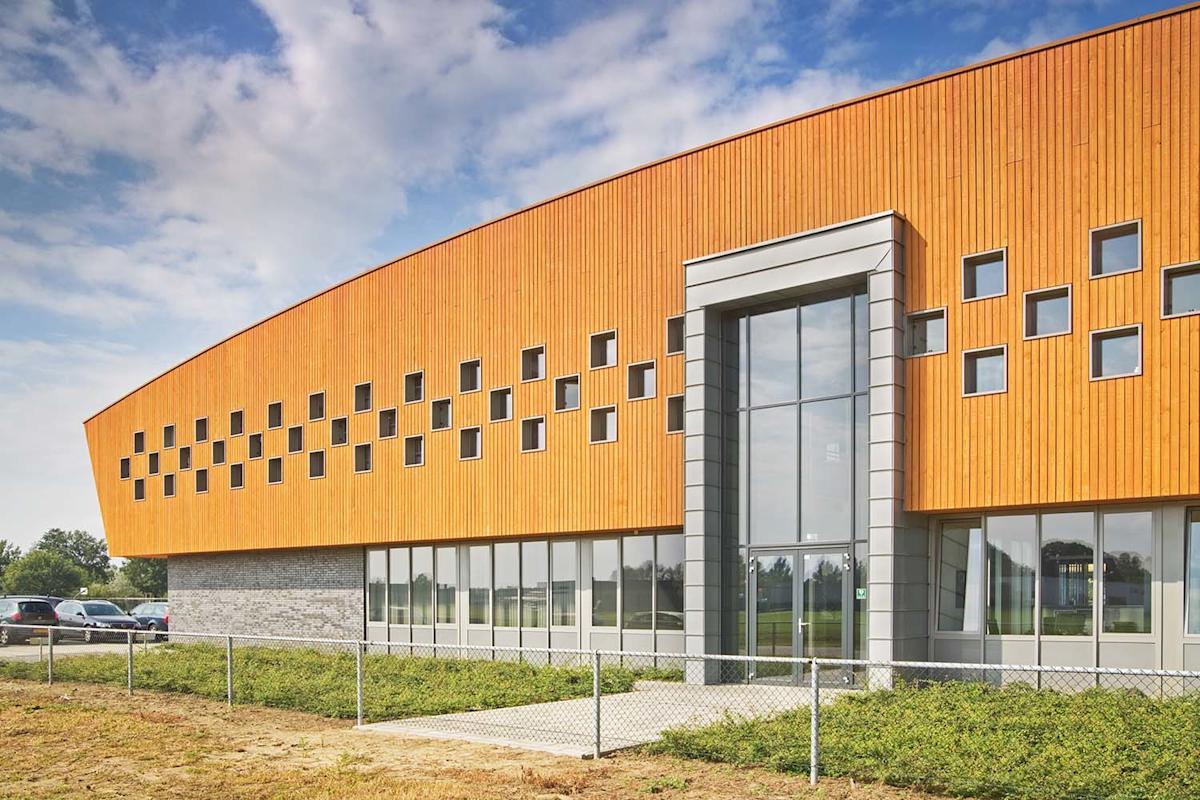 Op de beperkte bouwkavel hebben wij naast het gevraagde programma ook de nodige parkeerplaatsen, ontsluiting en een door de gemeente aangegeven groenstrook moeten realiseren. Het grondplan is dan ook strak op het toegestane bouwvlak geplaatst. Om het gevraagde programma te realiseren is de verdieping rondom voorzien van een uitkraging. De uitkragende bovenbouw is voorzien van een ronde daklijn. Achter deze daklijn ontstaat ruimte voor het uit het zicht plaatsen van installaties.