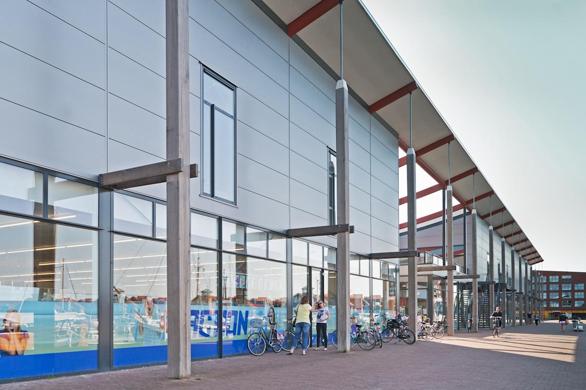 De afmeting van de binnenhaven vroeg om een gebouw met een groot gebaar. Een landmark of herkenningsteken met een over de volle lengte gelijke dwarsdoorsnede. Het golvende dak, als verwijzing naar een golf of een zeil, heeft tegelijkertijd de eigenschap dat het gebouw zich naar beide kanten opent. Het heeft dus eigenlijk twee gezichten: 1 richting de stad en 1 richting de haven.