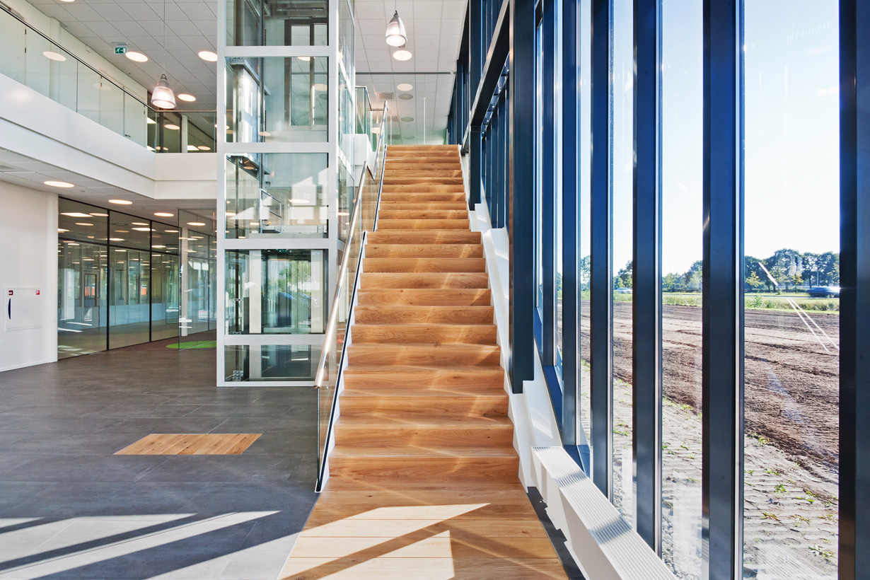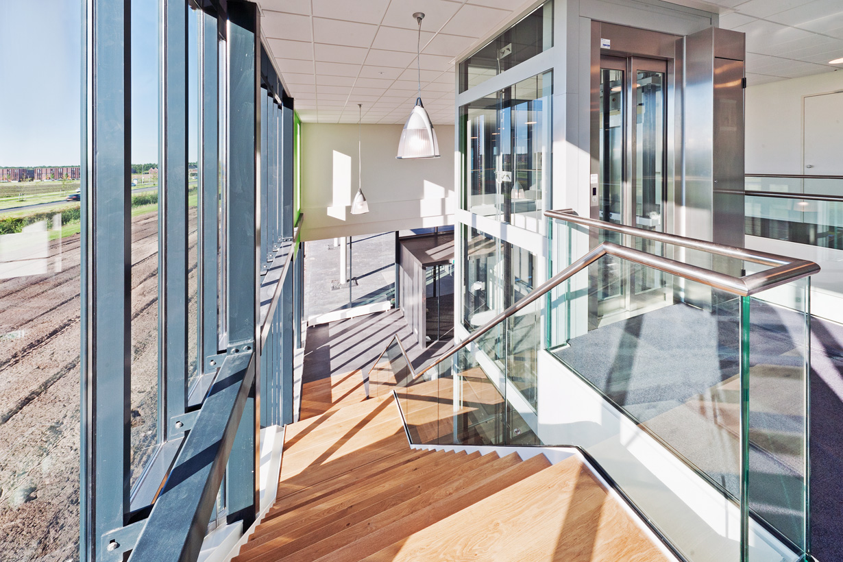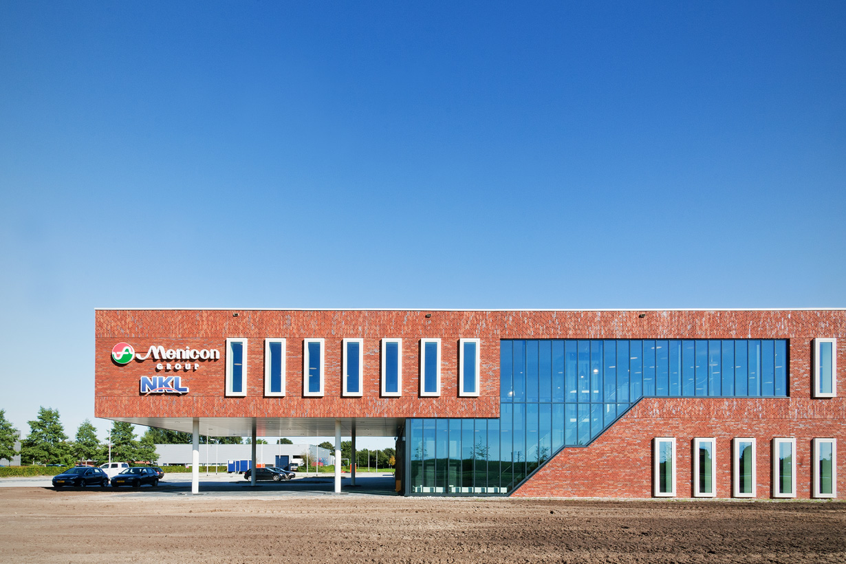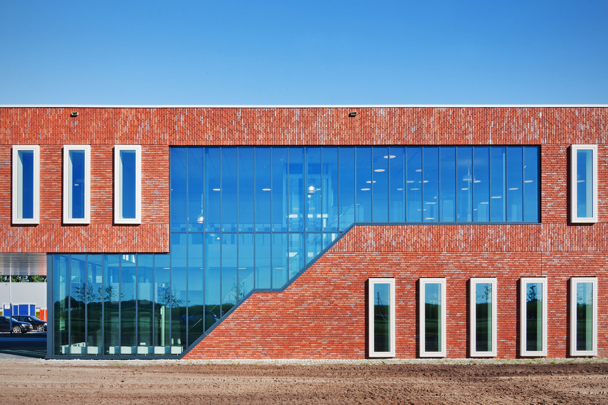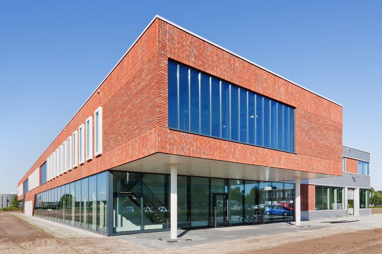 Vanuit de filosofie dat de mensen in de productie en van kantoor samen werken om een optimaal product te maken, hebben we een ontwerp gemaakt waarbij deze twee elementen in elkaar samenvloeien. Het glas van de productiehal loopt door in het kantoor en het metselwerk van het kantoor komt terug in de productiehal. De maat van de hal is zelfs zichtbaar in de voorgevel van het kantoor, doordat op de begane grond happen uit het kantoor zijn genomen. Hierdoor ontstaan overstekken, die automatisch zorgen voor het accentueren van de entrees.