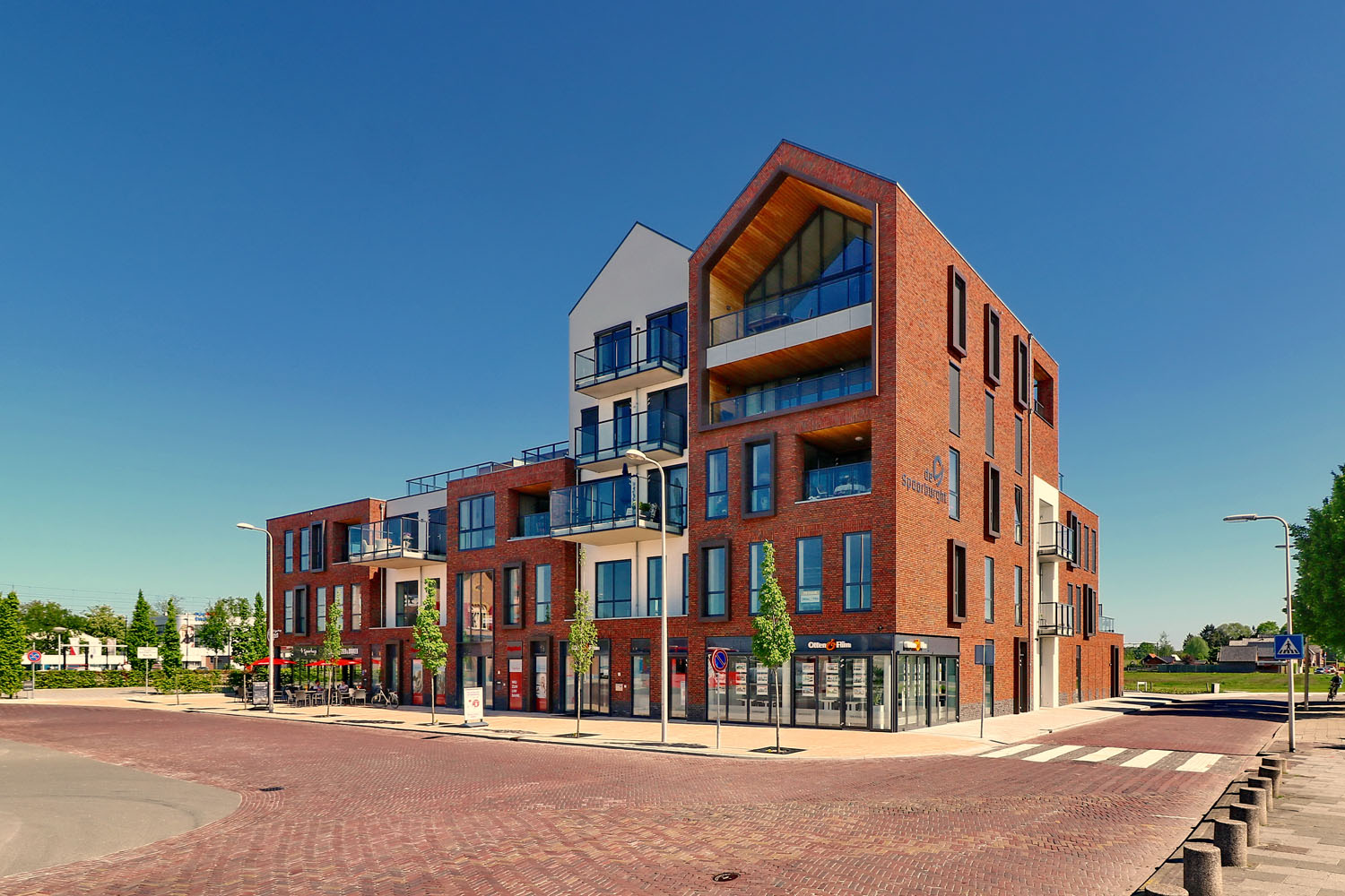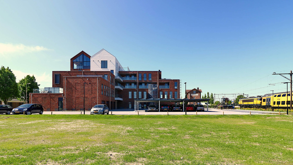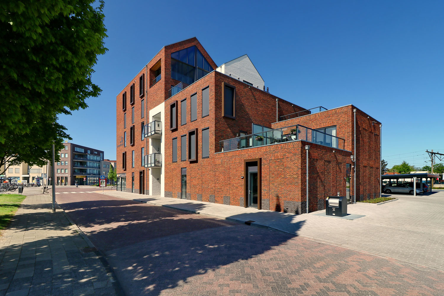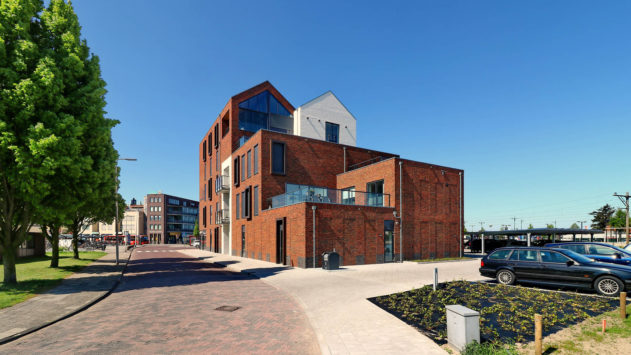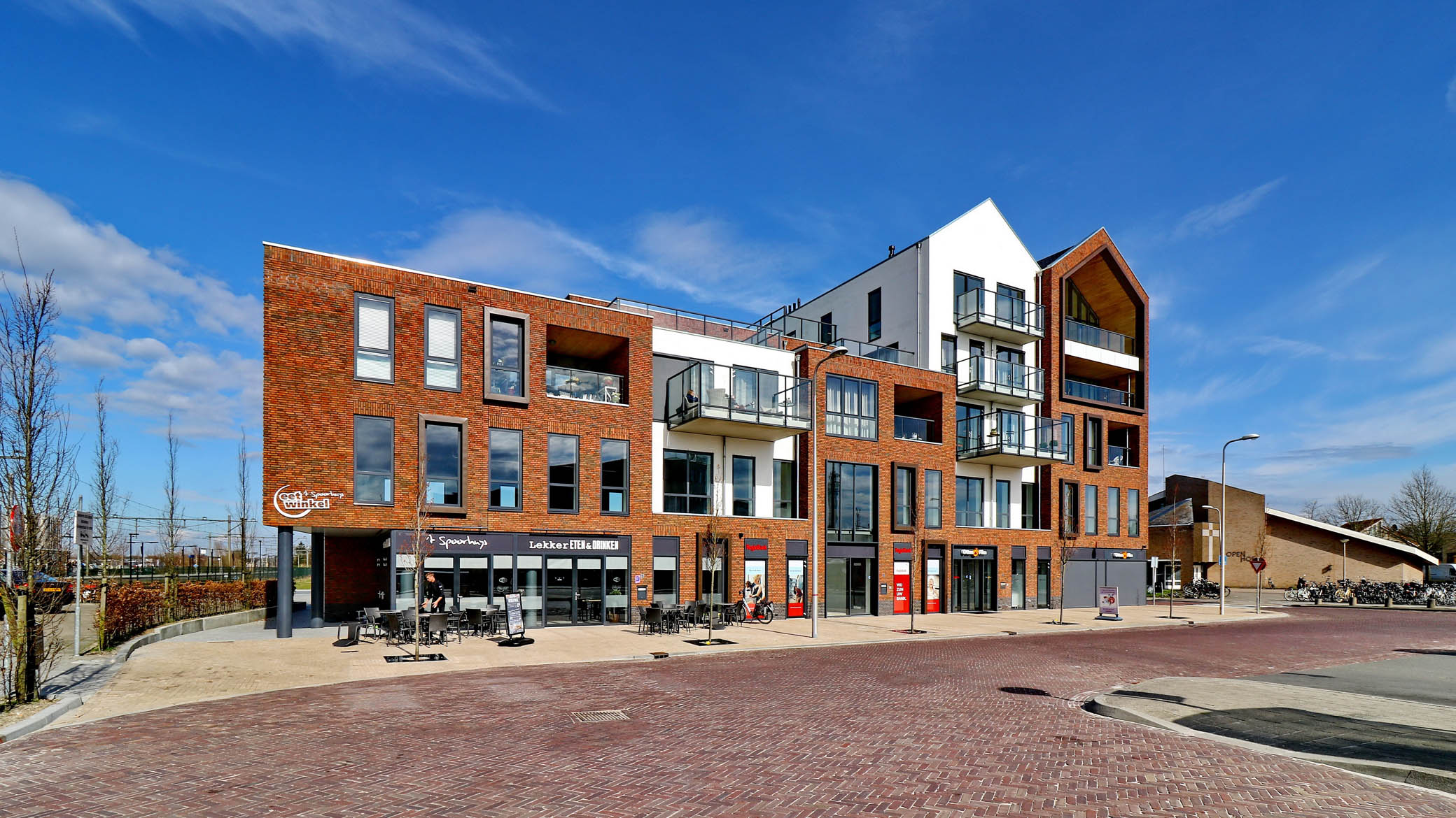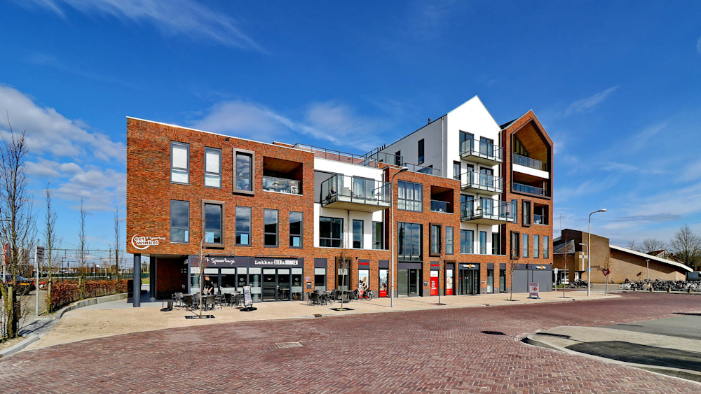 Beltman Architecten heeft het ontwerp gemaakt voor zowel de Spoorburght als de daarachter liggende Albert Heijn supermarkt.