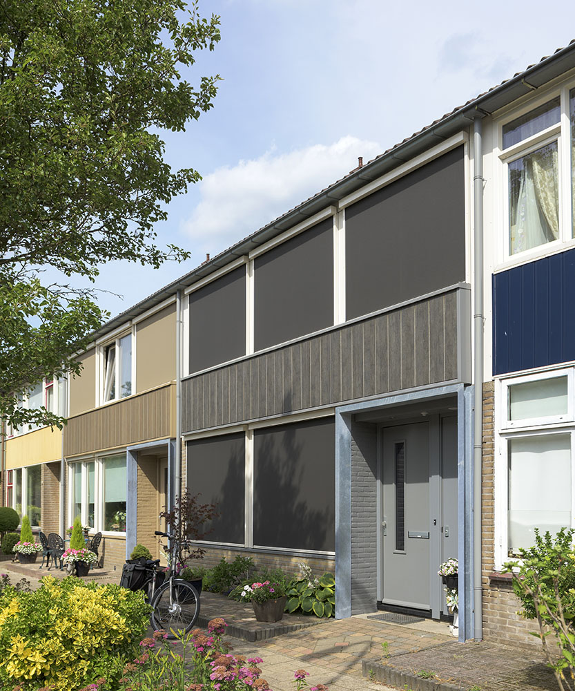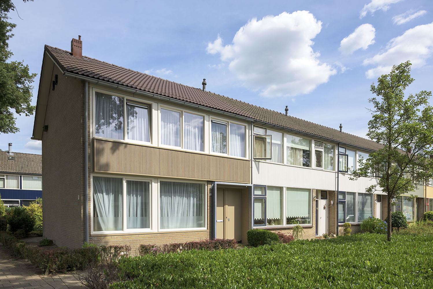 De huidige uitstraling van de wijk is heel divers en dat zal door de eigendomsverhoudingen in de toekomst ook zo blijven. Daarom hebben de huurders óók hun eigen keuzes kunnen maken. Ze hadden hierbij keuze uit vier natuurlijke houttinten met bijpassende kleuren voor de entreepartijen. Zo blijft het beeld wel gevarieerd, doch rustig.