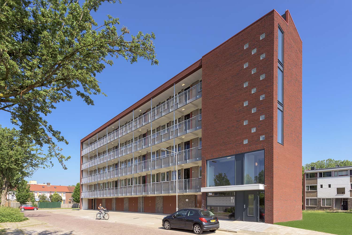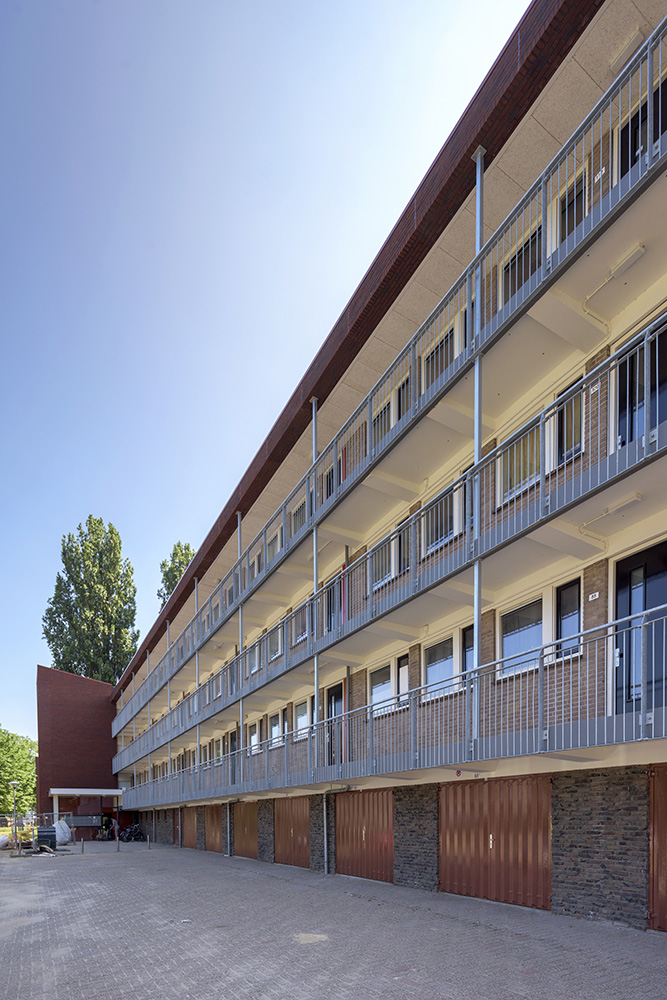 De flats zijn op de kopgevels voorzien van nieuw metselwerk en de galerijgevels zijn schoon gemaakt. De galerijzijde van de complexen zijn voorzien van een nieuw hekwerk; aan de andere zijde is de borstwering voorzien van lichte steenstrips en een balustrade.