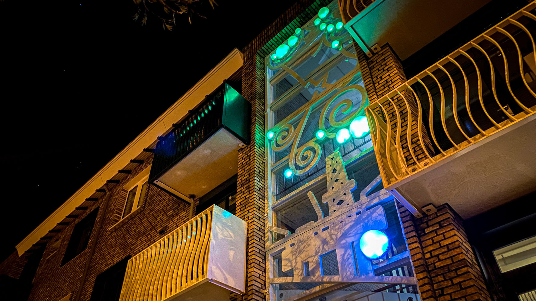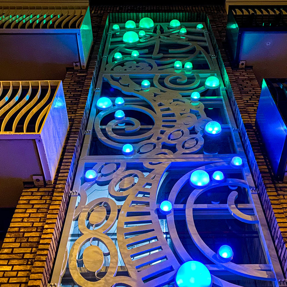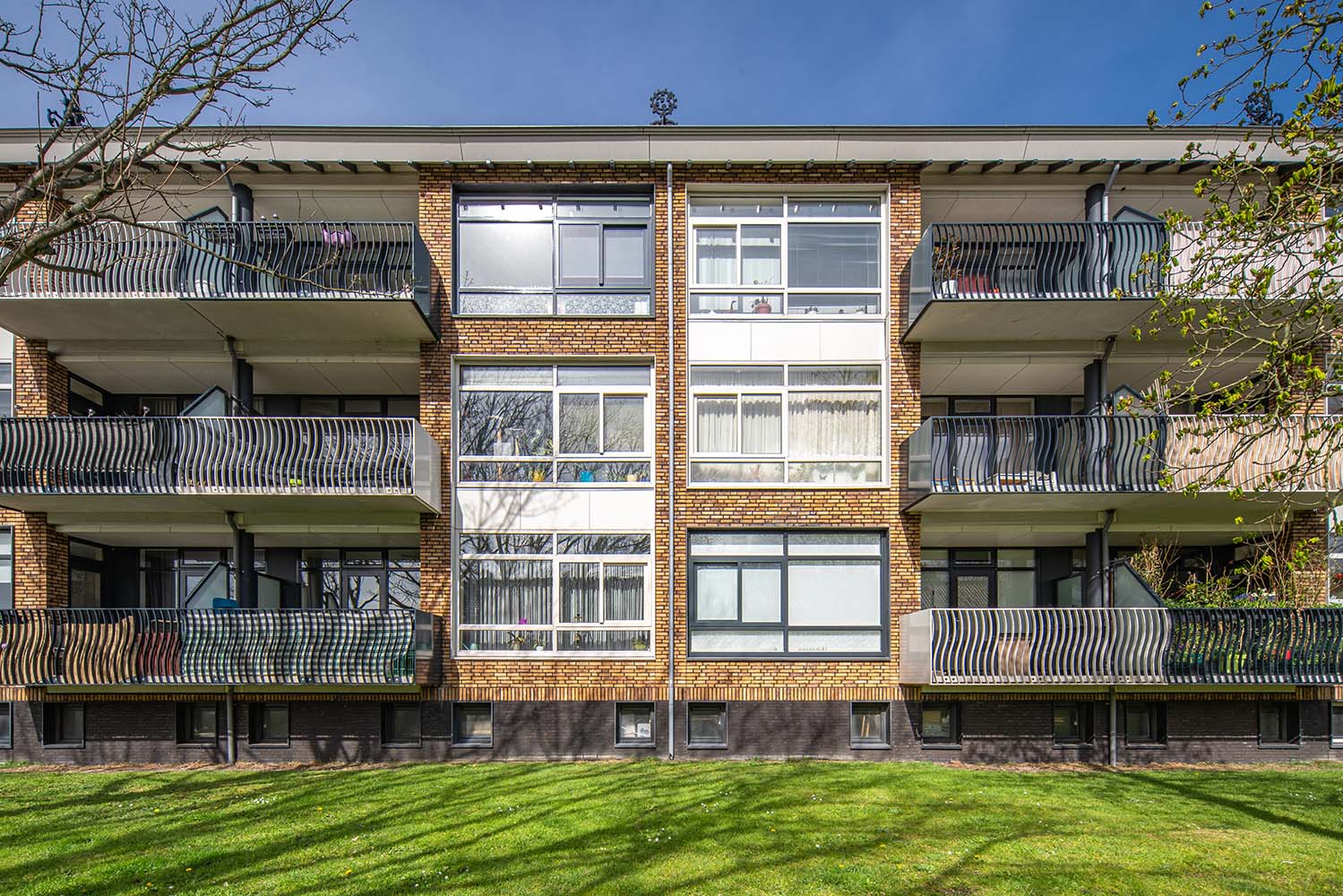 De combinatie van de strakke orthogonale vlakken met het frivole vrije kunstwerk maken dit project tóch nog tot een opzienbarend project dat het aanzicht van de straat aanzienlijk heeft verfraaid!