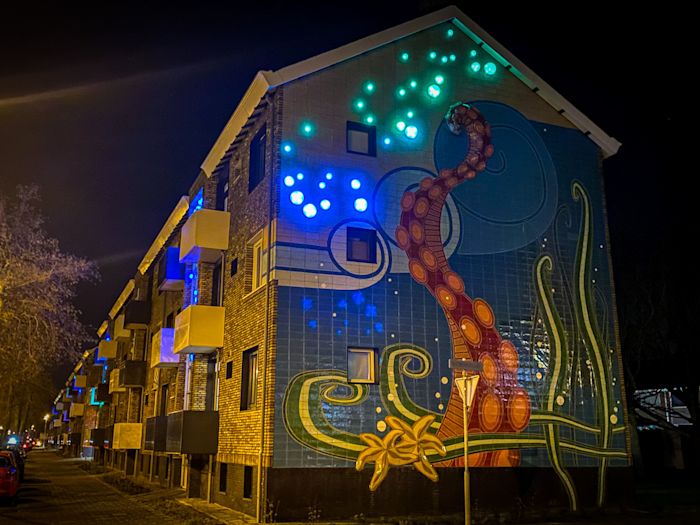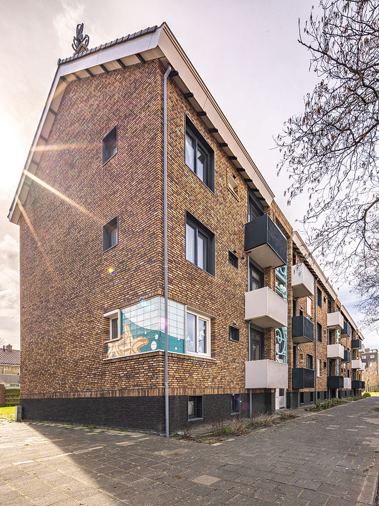 Bij de upgrading van de buitenzijde van drie woningblokken aan de Helderse Waddenzeestraat is kunst geïntegreerd in de gevel. De uitgangspunten van Hundertwasser zijn nog steeds herkenbaar in het ontwerp van de upgrading, vertelt architect en directeur Koert Helmes van Beltman Architecten.