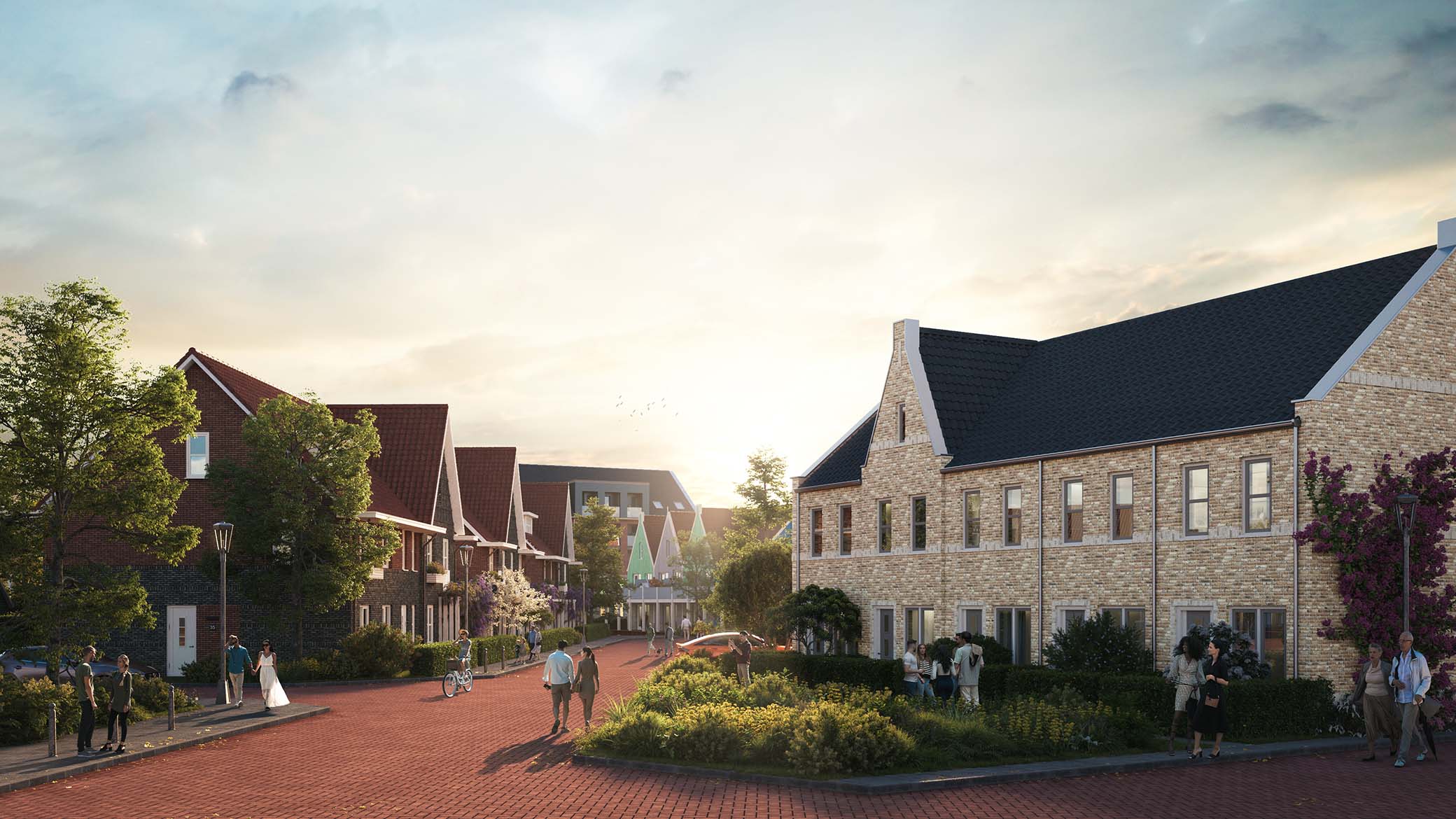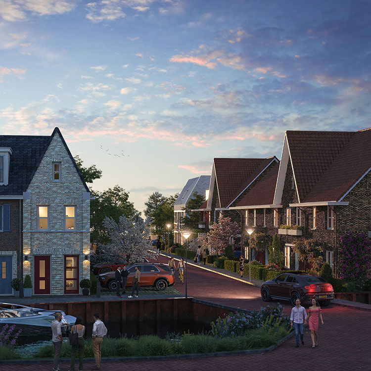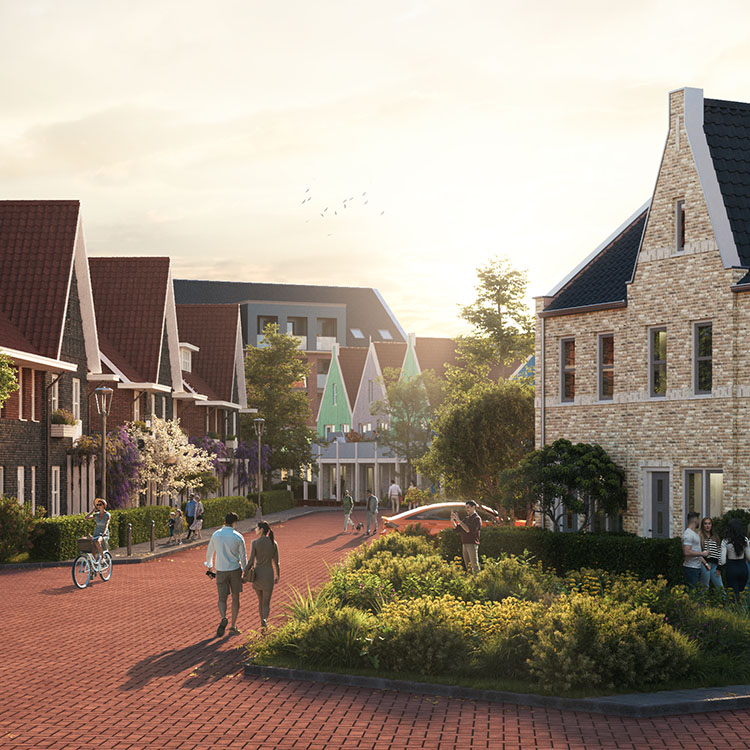Het gebied langs de dijk heeft een open en ruimtelijk karakter. De verkaveling is hierop gebaseerd, zodat het wonen aan de dijk toegankelijk is voor meerdere doelgroepen; van starters tot senioren en (jonge) gezinnen. De variatie in woningtypes zorgt daarmee meteen voor afwisselende bouwhoogtes, waarbij de hoogtes richting de hoekpunten toenemen en er een logische aansluiting onstaat met het nabijgelegen Havenkantoor. Deze hoogtevariatie draagt bij aan een speels en authentiek aanzicht en doet denken aan de charmante uitstraling van de traditionele houten visserhuisjes, die een belangrijk deel vormen van de historie van Zeewolde.