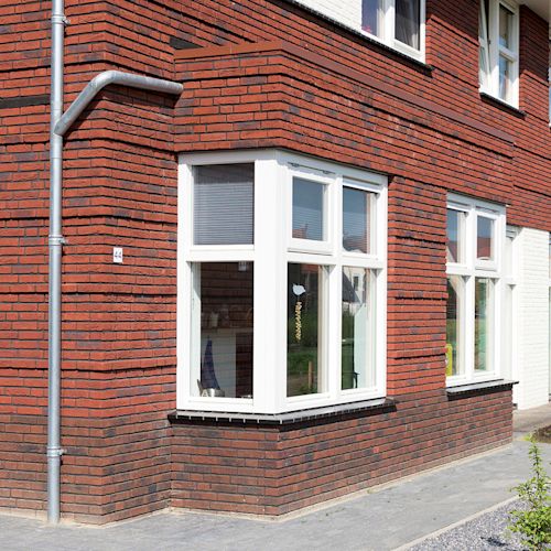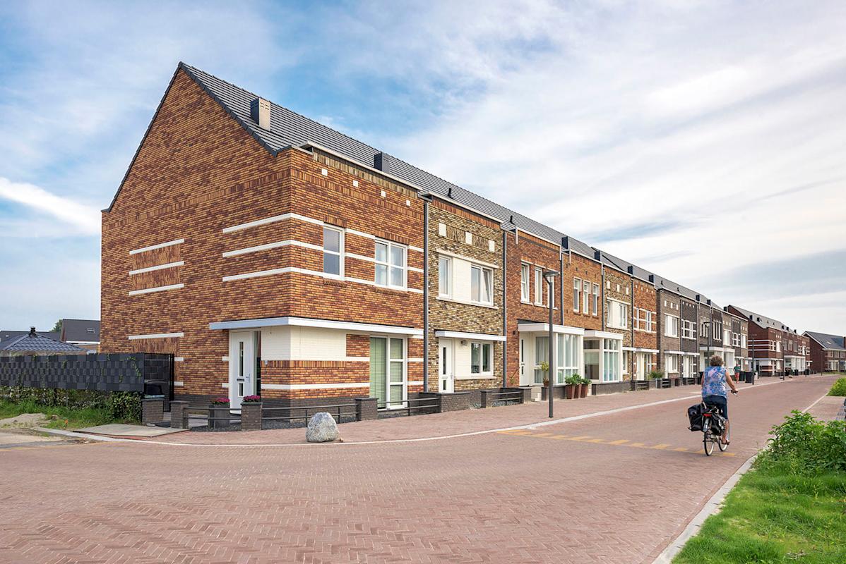 Esther Mastenbroek van Beltman Architecten: “We hebben gekozen voor woningen met veel individualiteit. Een echt herenhuizengevoel, waarbij we de verticaliteit benadrukken zoals je dat ook ziet bij de klassieke grachtenhuizen. In hoofdlijnen zijn er twee verschillende woningtypen, die zich allebei onderscheiden door ‘hoogte’. De woningen van het eerste type hebben een verhoogde zolder, bij het andere type is er sprake van split-level, wat inhoudt dat de entree wat hoger ligt. Door die hoogteverschillen krijg je een gevarieerd straatbeeld, ook omdat niet alle kozijnen over de hele rij in één lijn lopen. Dat speelse effect hebben we nog versterkt door binnen de rij te werken met vier verschillende gevelbeelden die door elkaar worden gebruikt.”