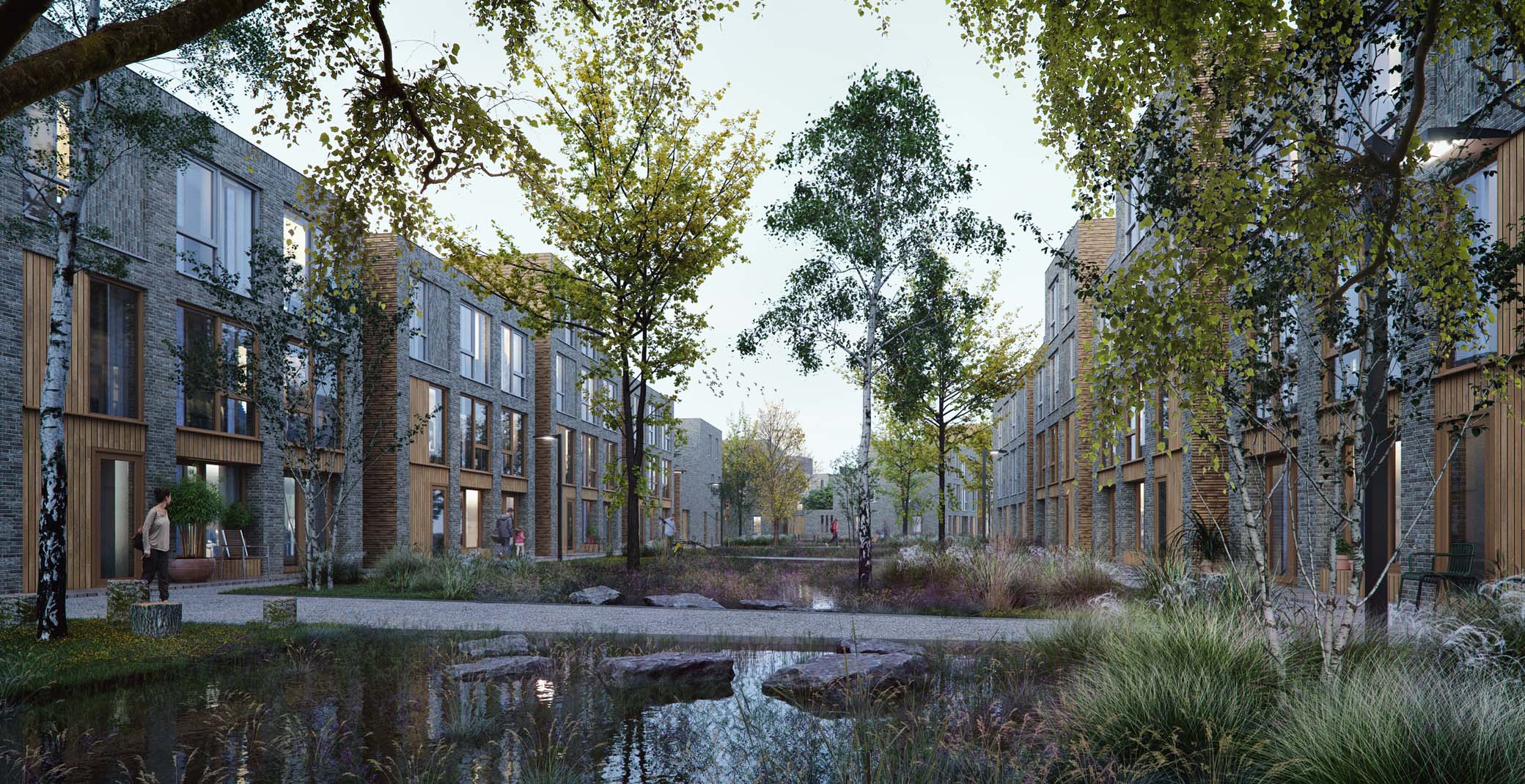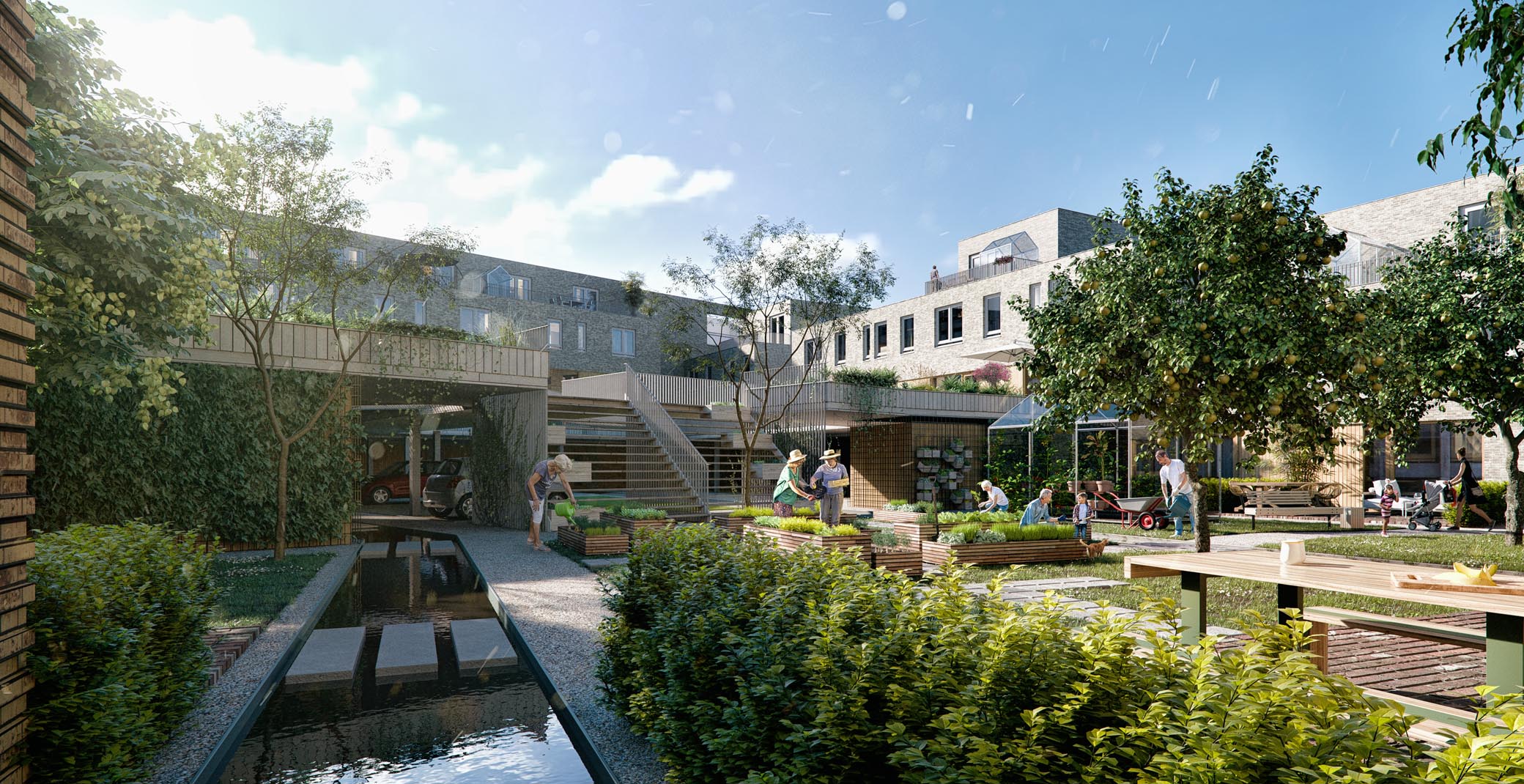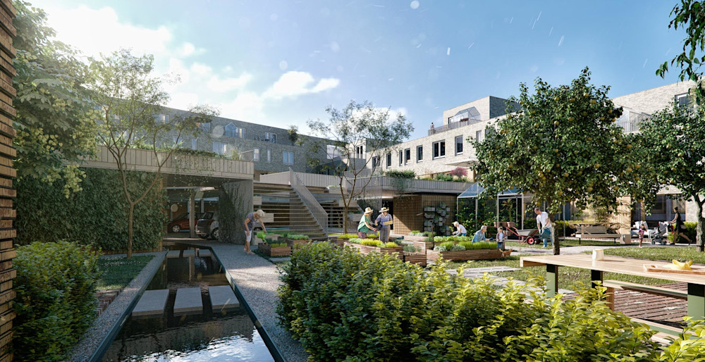 Wij bewegen mee met de vraag die op tafel ligt. Soms eigenzinnig om u te verrassen met een vernieuwend idee. Door bijvoorbeeld met slimme inrichting auto’s aan het zicht te onttrekken en extra ruimte te bieden voor groen en ontmoeting. Een plek waar water dient als de architectonische verbinding tussen de woningen en met het groen de drager van de wijk vormen. Anderzijds om samen de vraag en oplossing concreter te maken. Het resultaat? Een plan voor een groene oase van rust waar ruimte, contact en gemak het gezamenlijke gevoel voeden.