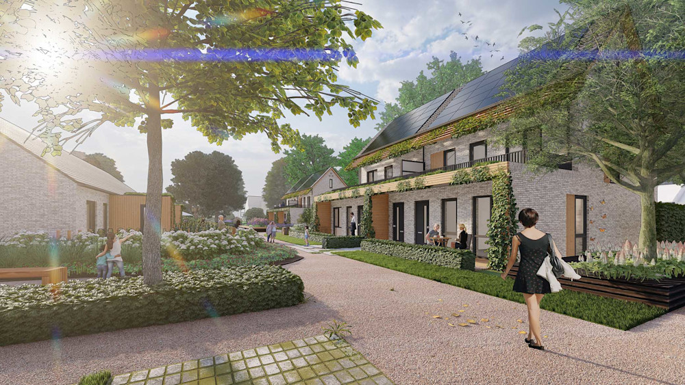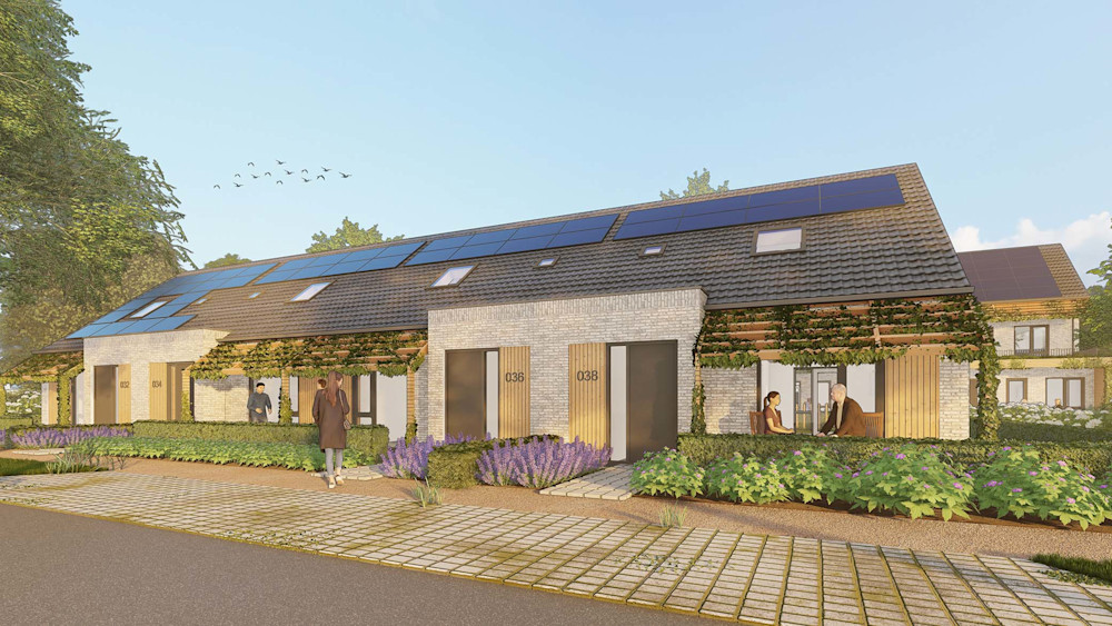 Dit, in combinatie met het ontbreken van klassieke erfafscheidingen, zorgt voor een “vakantiepark-gevoel”. Dit gevoel wordt nog eens versterkt door de geïntegreerde nestkasten in de kopgevels.