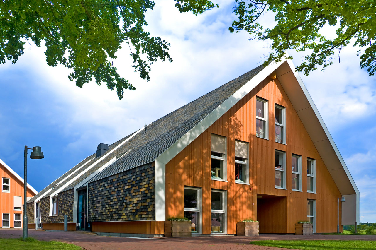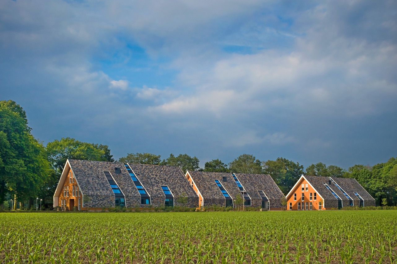 Het architectonische uitgangspunt is de typologie van de grote schuren. Gekenmerkt door een massale, doch eenvoudig kap, en een houten basis van één bouwlaag. Om niet te vervallen in een kopie van de bestaande schuren is bewust gezocht naar een moderne variant die zich voegt naar het landschap.